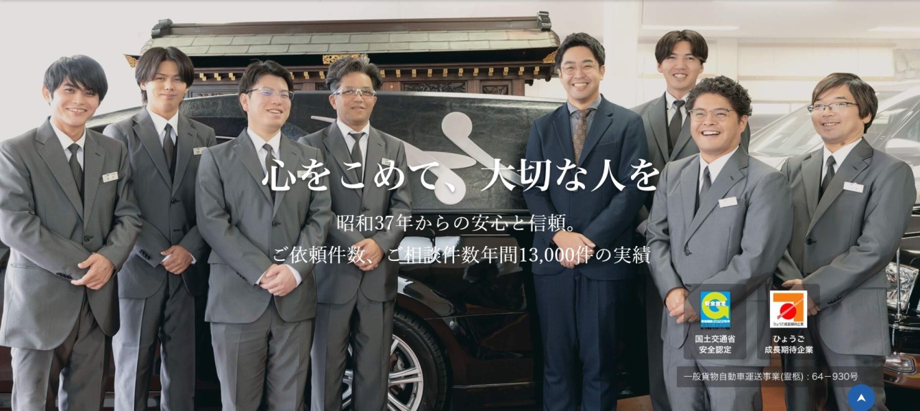 新しい旅立ち、故人への敬意を込めて。 私ども、阪神特殊自動車株式会社とは昭和37年9月設立し、兵庫県伊丹市(昭和58年移転)に本社営業所を置き、神戸市には神戸営業所、明石市には明石営業所、兵庫県篠山市には篠山営業所を配置し、京阪神間を始め近畿地区全域を営業区域(事業者番号64-930号)として霊柩車・寝台車を運行し、ご遺体の搬送を専業としている会社です。 各地域の葬祭業者様や地方公共団体様からのご遺体の搬送業務委託を主に、一般個人(御葬家)様からのご依頼に基づき、ご遺体の搬送サービスを提供致しております。 ※遠方搬送も承っておりますので、まずは一度ご相談下さい。